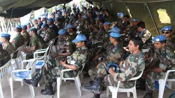 The hundreds of peacekeepers based in the province of Equateur, from Egypt, Ghana, Uruguay, Paraguay, Nigeria, Cameroon, Mali, are helping, on a daily basis, the FARDC to secure the civilian population and restore peace in this Province, recently devastated by the last rebels' attack last April. In Gemena, Gbadolite and Mbandaka, MONUC had to increase its military strength. In memory of the Ghanaian soldier as well as that of all Congolese soldiers and policemen killed on duty, one minute of silence was observed at the end of the football game between MONUC peacekeepers to FARDC/ PNC;