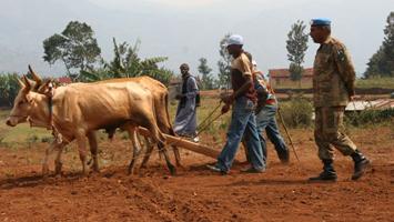 «Au début, quelques-uns parmi les fermiers craignaient que leurs vaches ne se tuent en tirant la charrue », a expliqué le commandant du Bataillon, le lieutenant-colonel Akif. «Mais nos troupes ont réussi à les rassurer qu'un peu de travail ne ferait pas de mal à leurs bêtes. Dans certaines des communautés d'où nos Casques Bleus sont originaires, le bétail est encore utilisé aujourd'hui pour le labourage des champs».